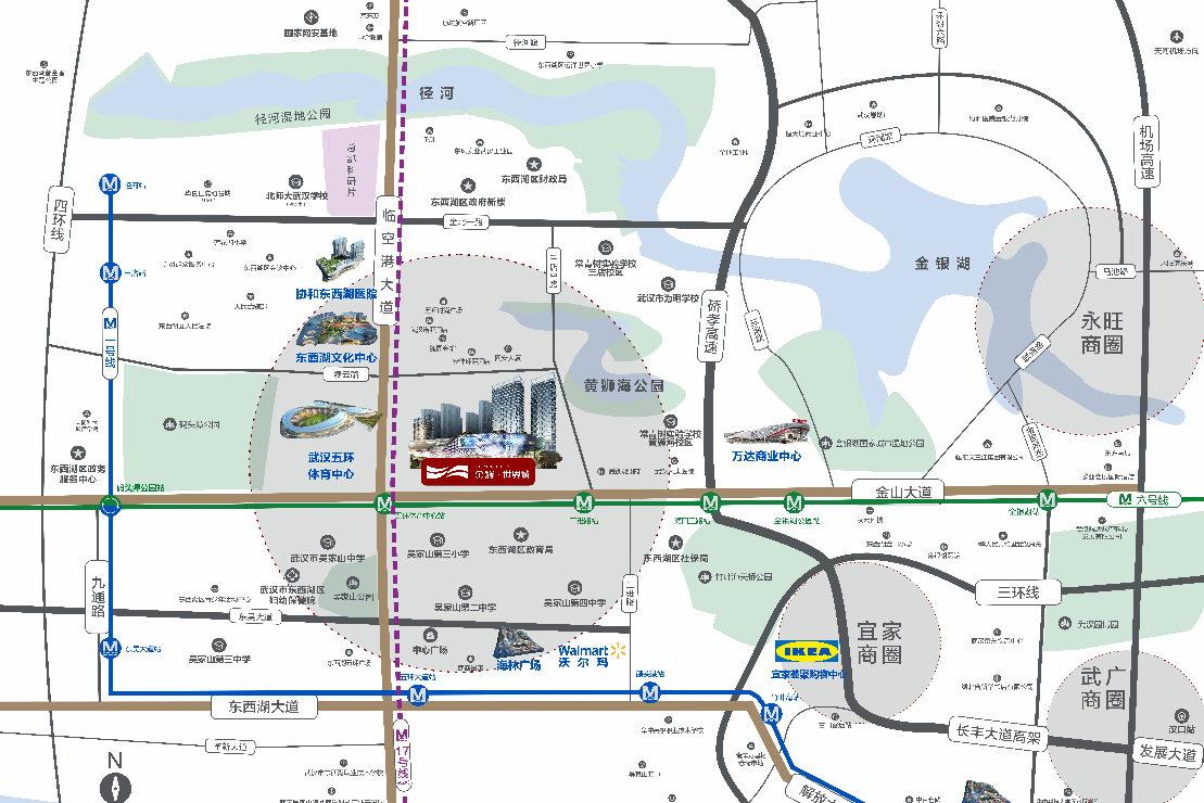 政務(wù):東西湖新政府大樓,財(cái)政局,教育局,社保局,會(huì)議中心,人民法院,五環(huán)體育中心、東西湖文化中心
